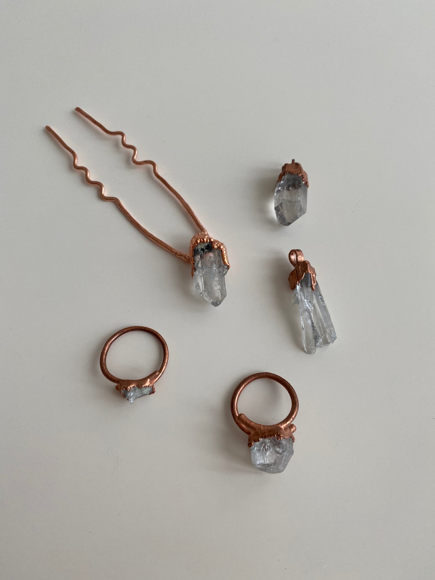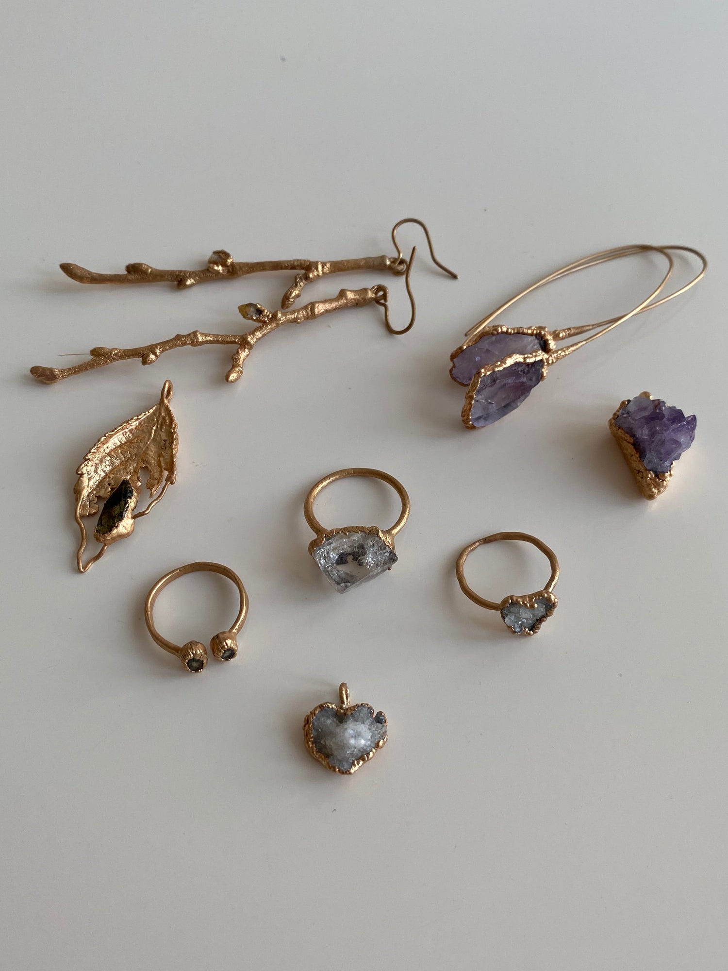 All our jewellery created with natural stones and real plants covered by precious metals (silver, gold, copper).