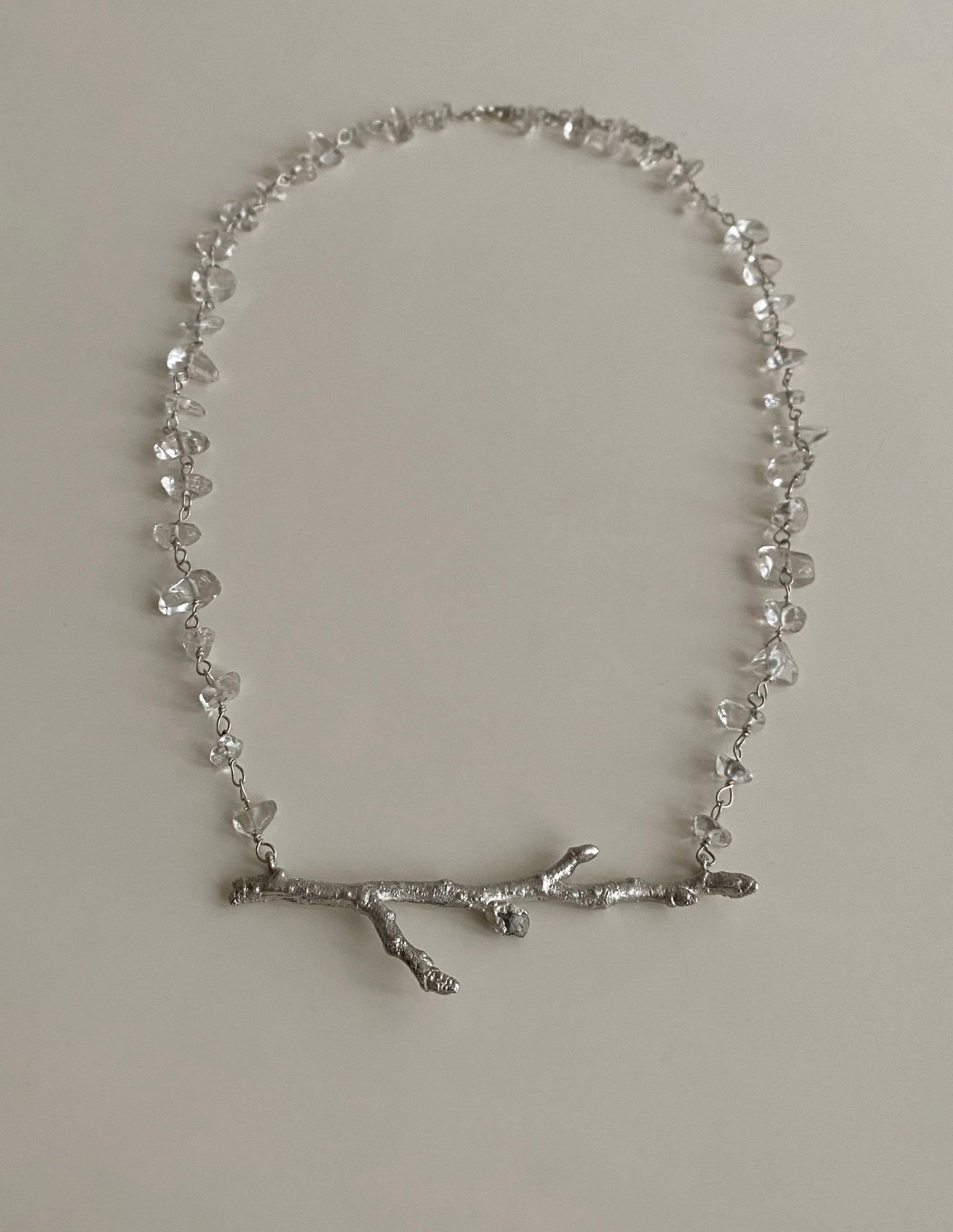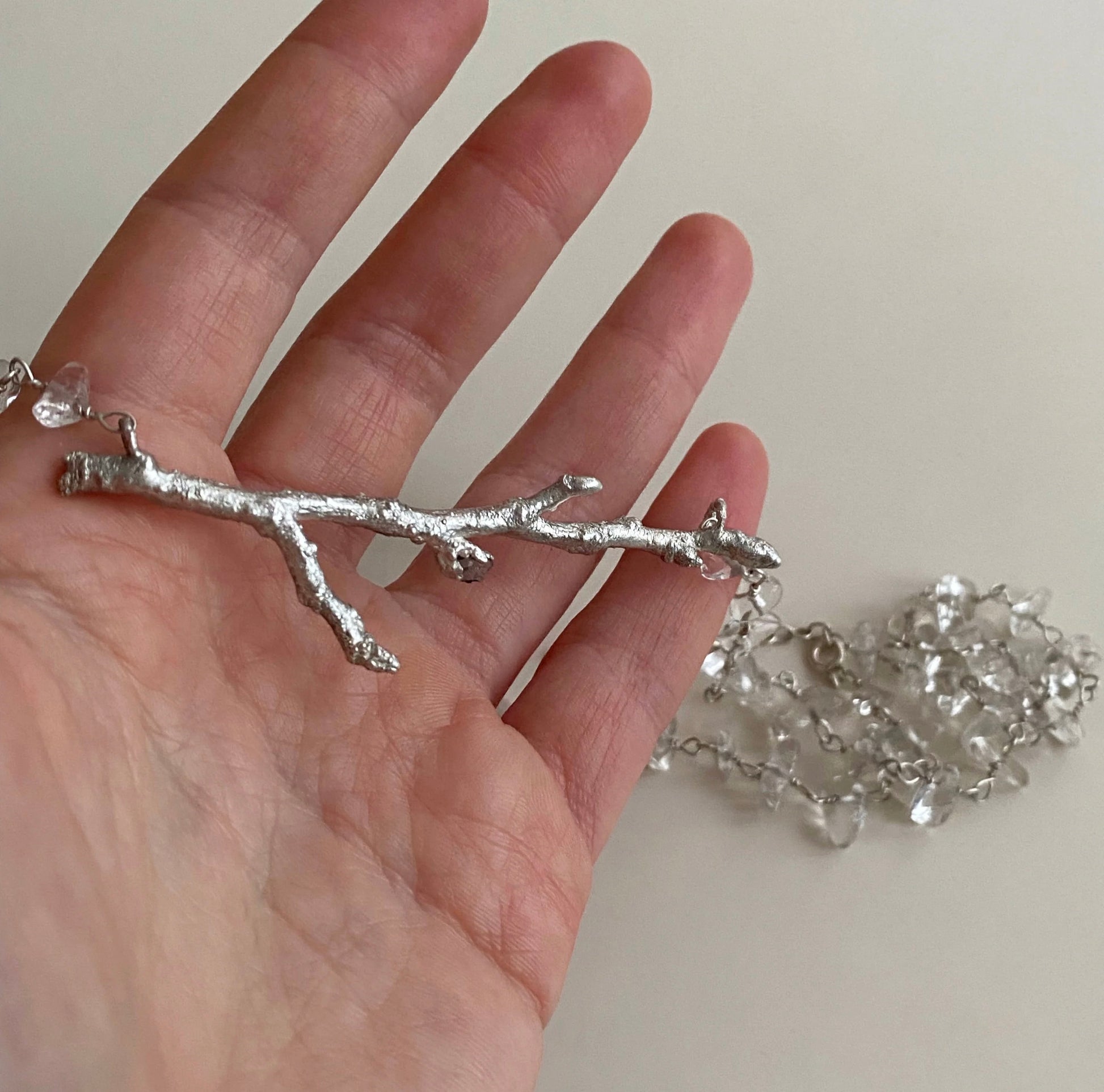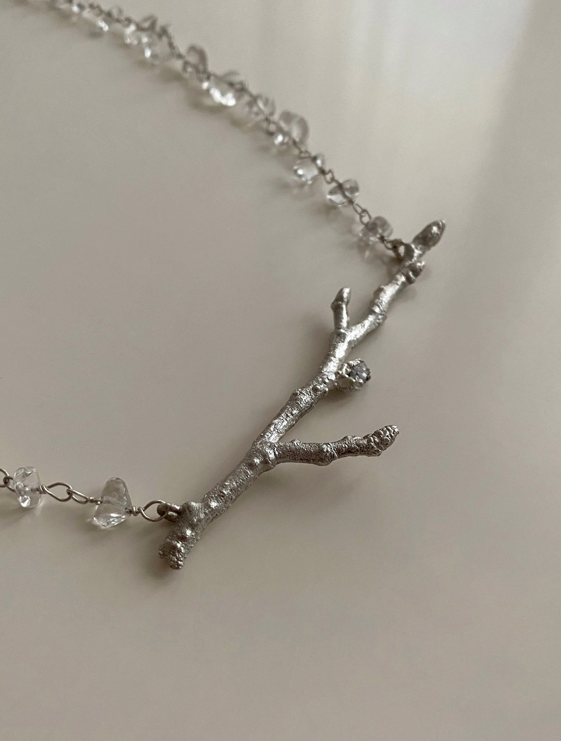 Necklace with Silver Branch and Clear Quartz, Unique Handcrafted Necklace, Silver Twig Pendant