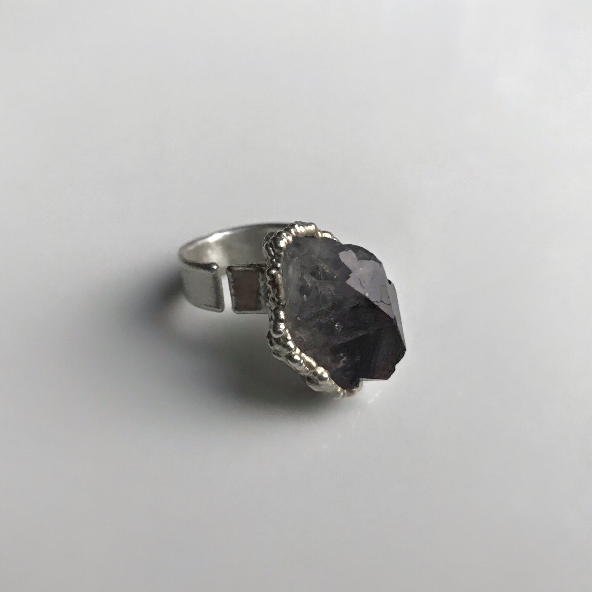 The material is amethyst, covered with a layer of copper and a big layer of silver.