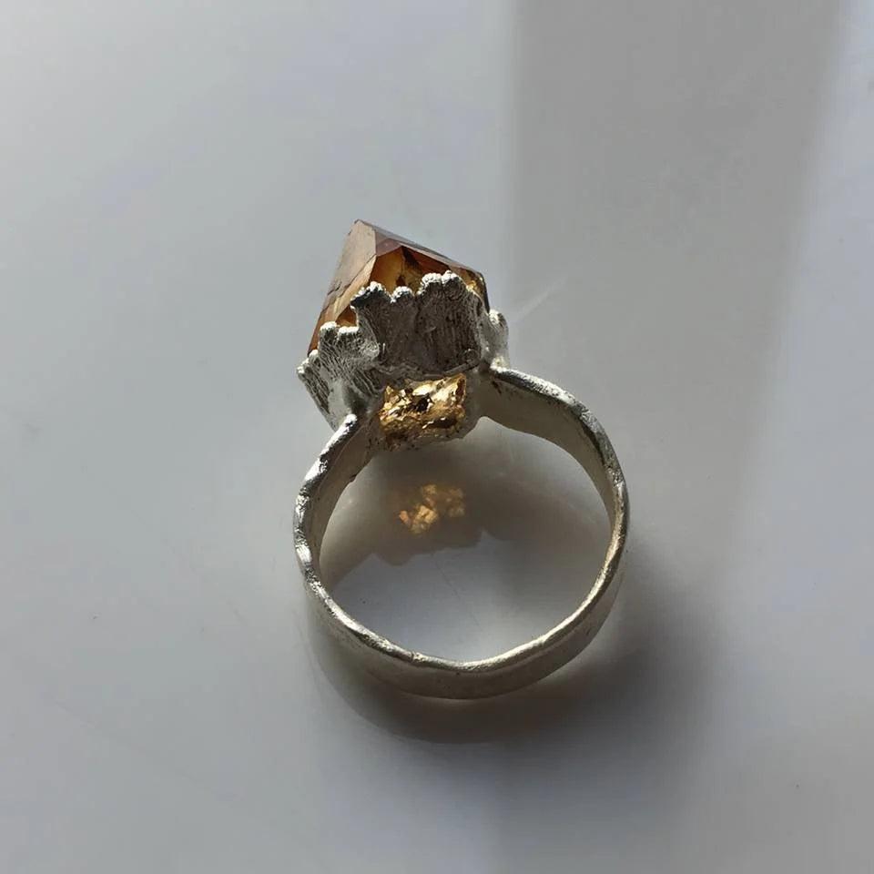 The material is natural citrine, covered with a layer of copper and a big layer of silver.