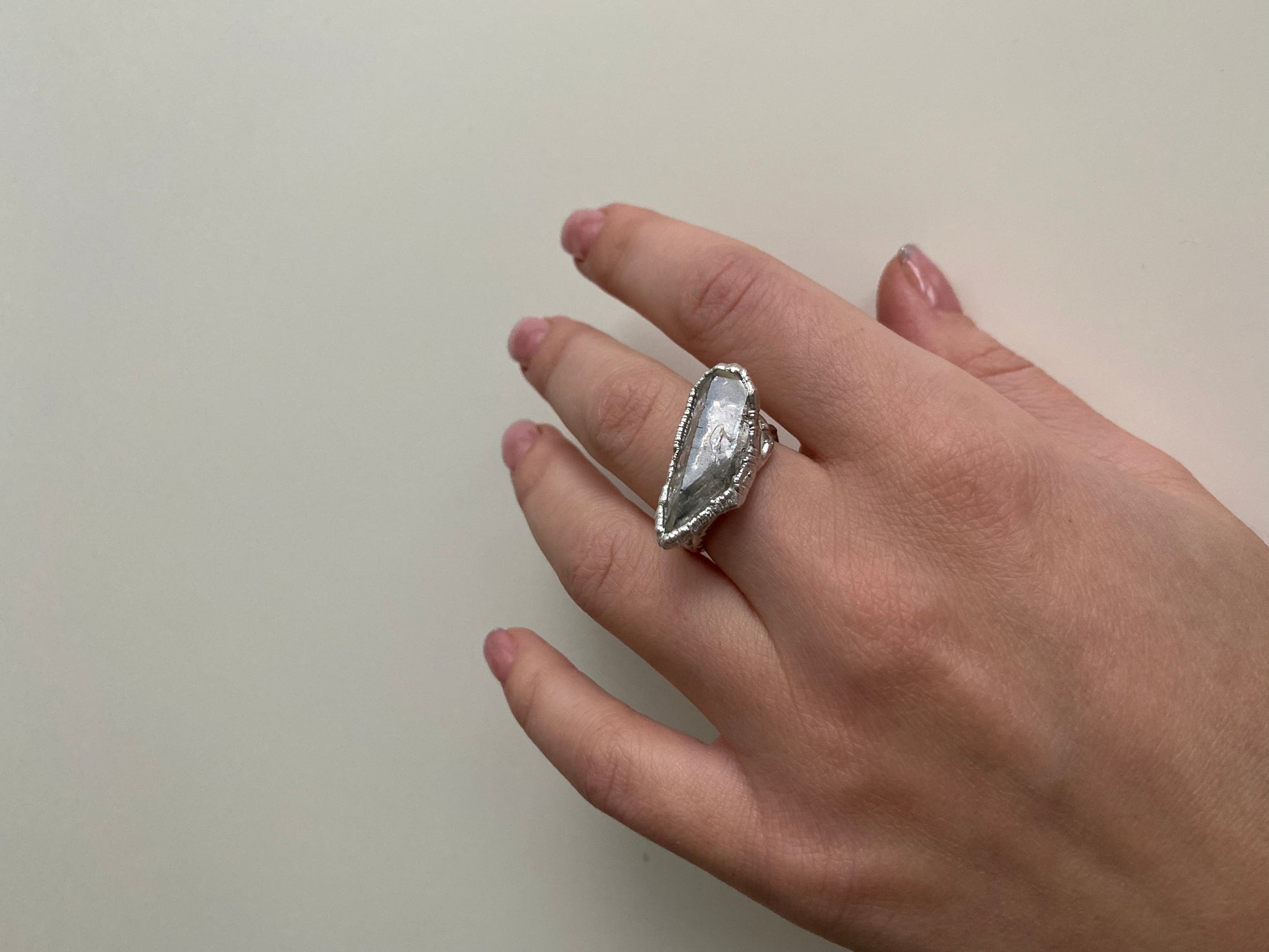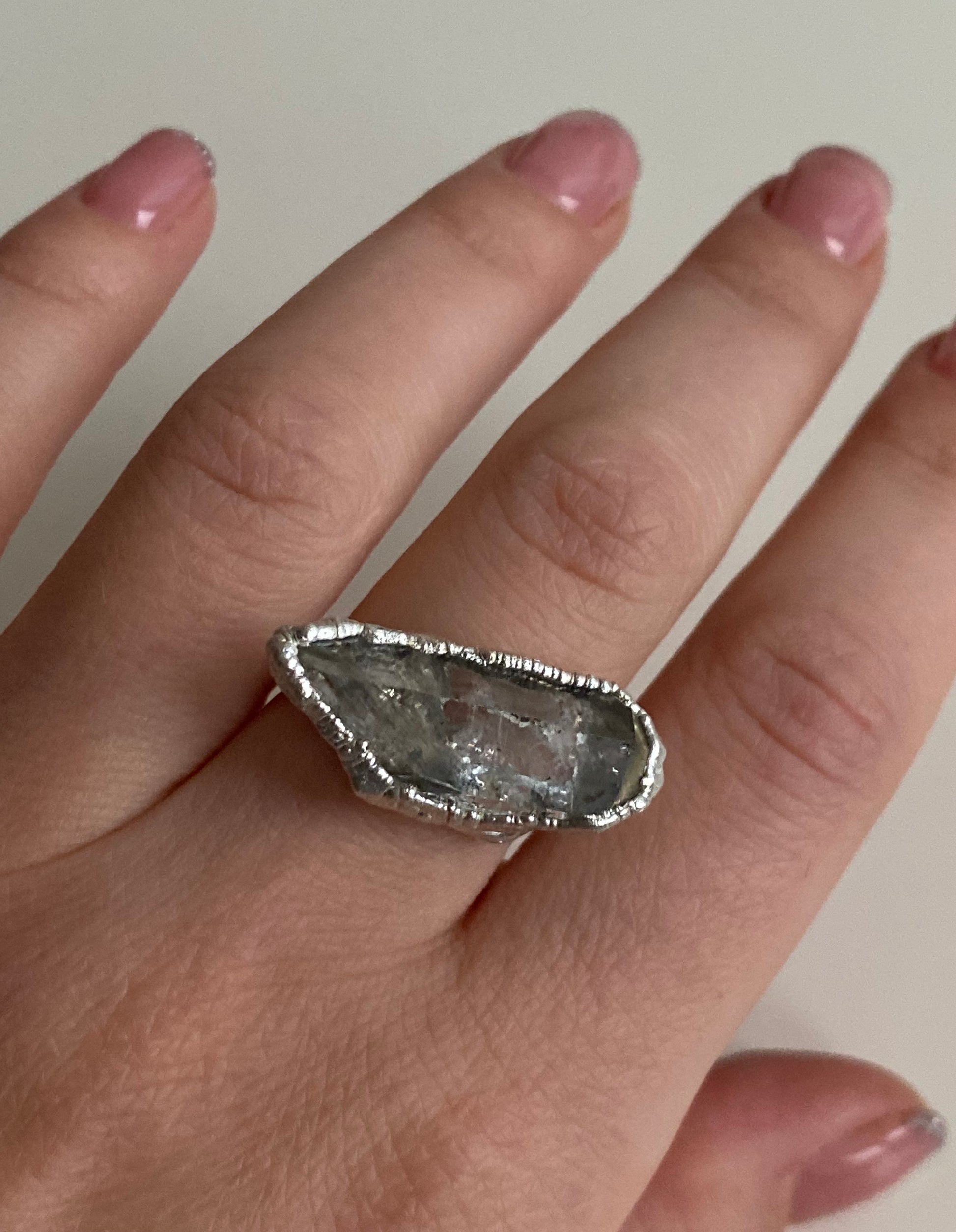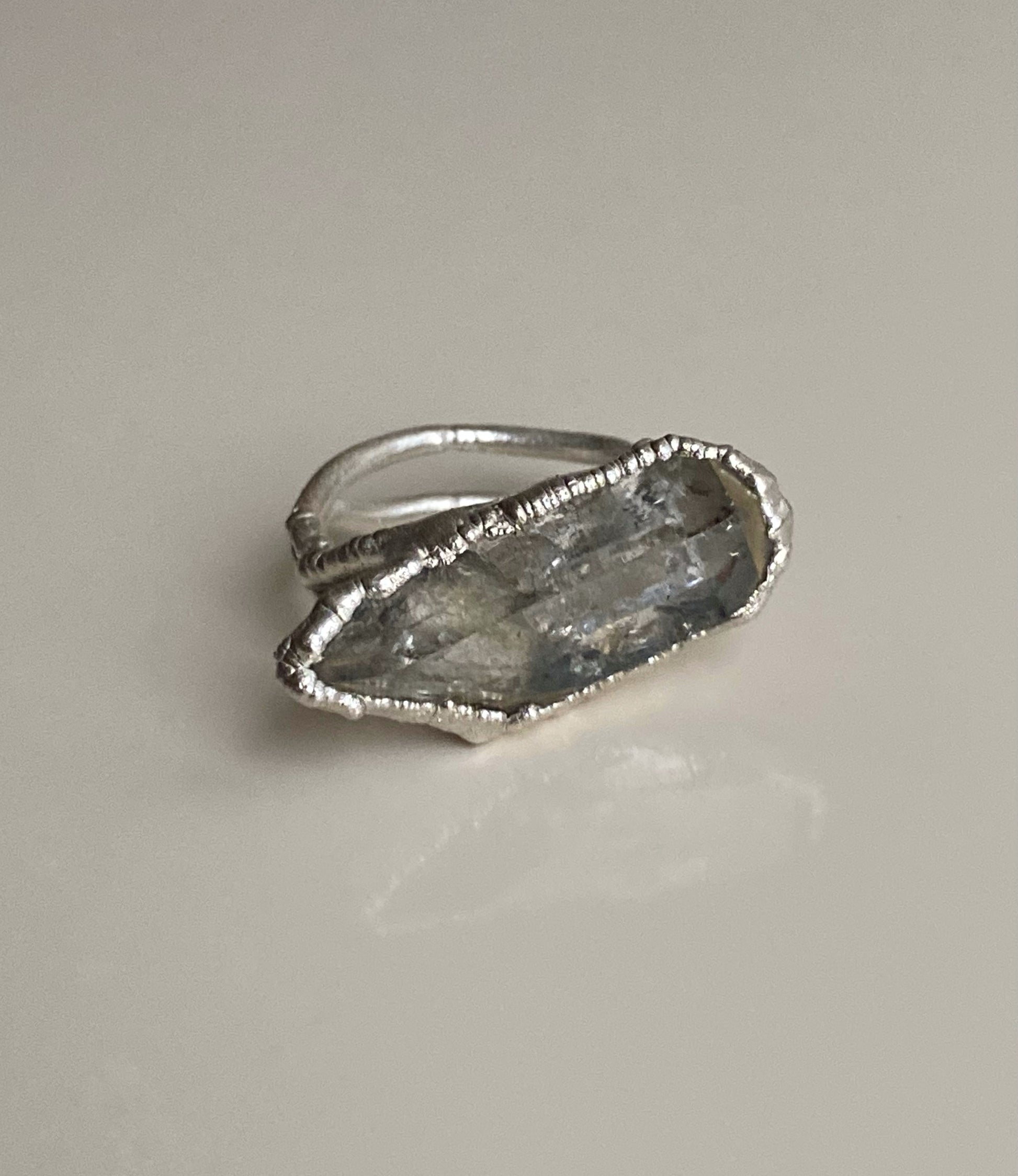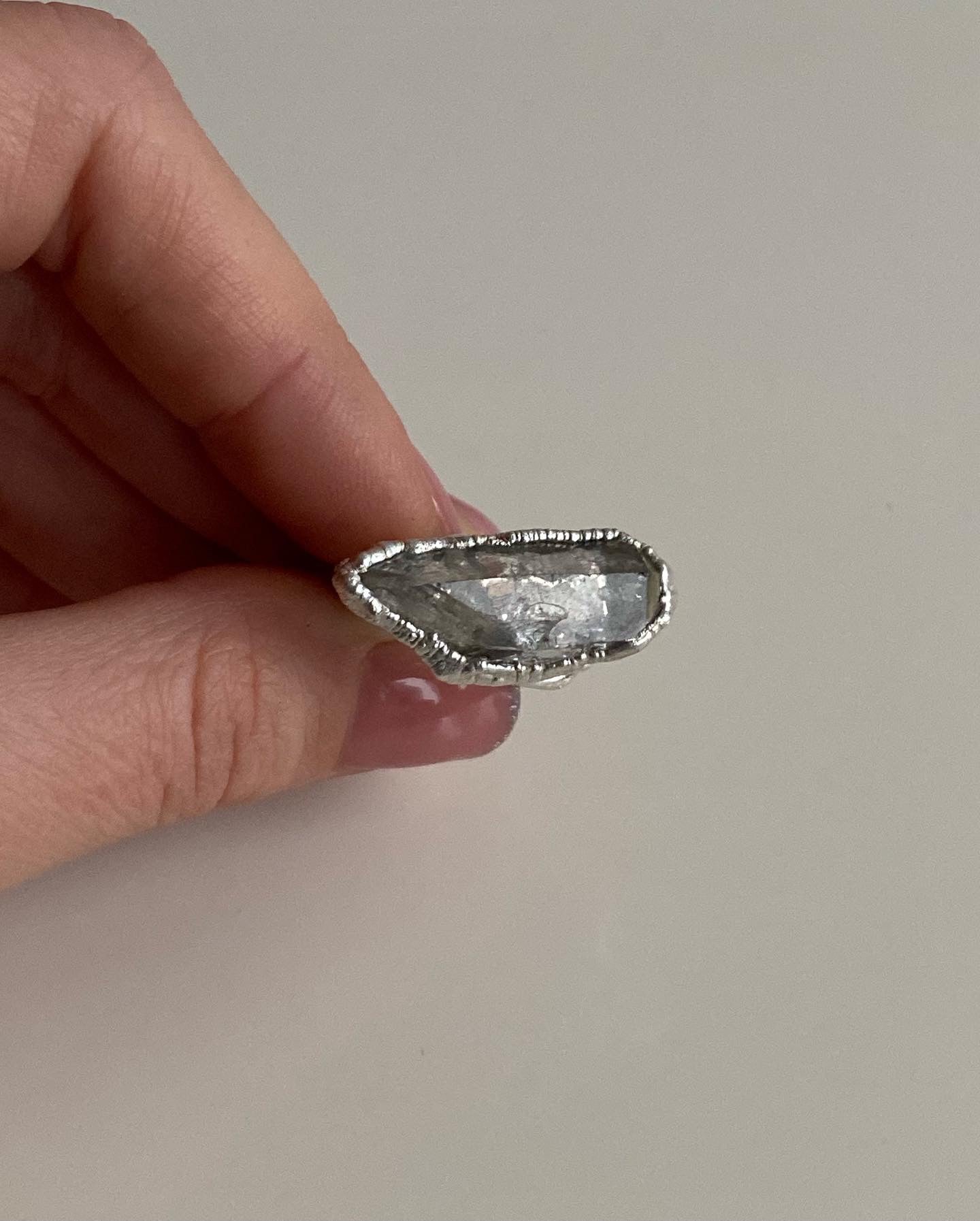 The material is natural rock crystal, covered with a layer of copper and a big layer of silver.