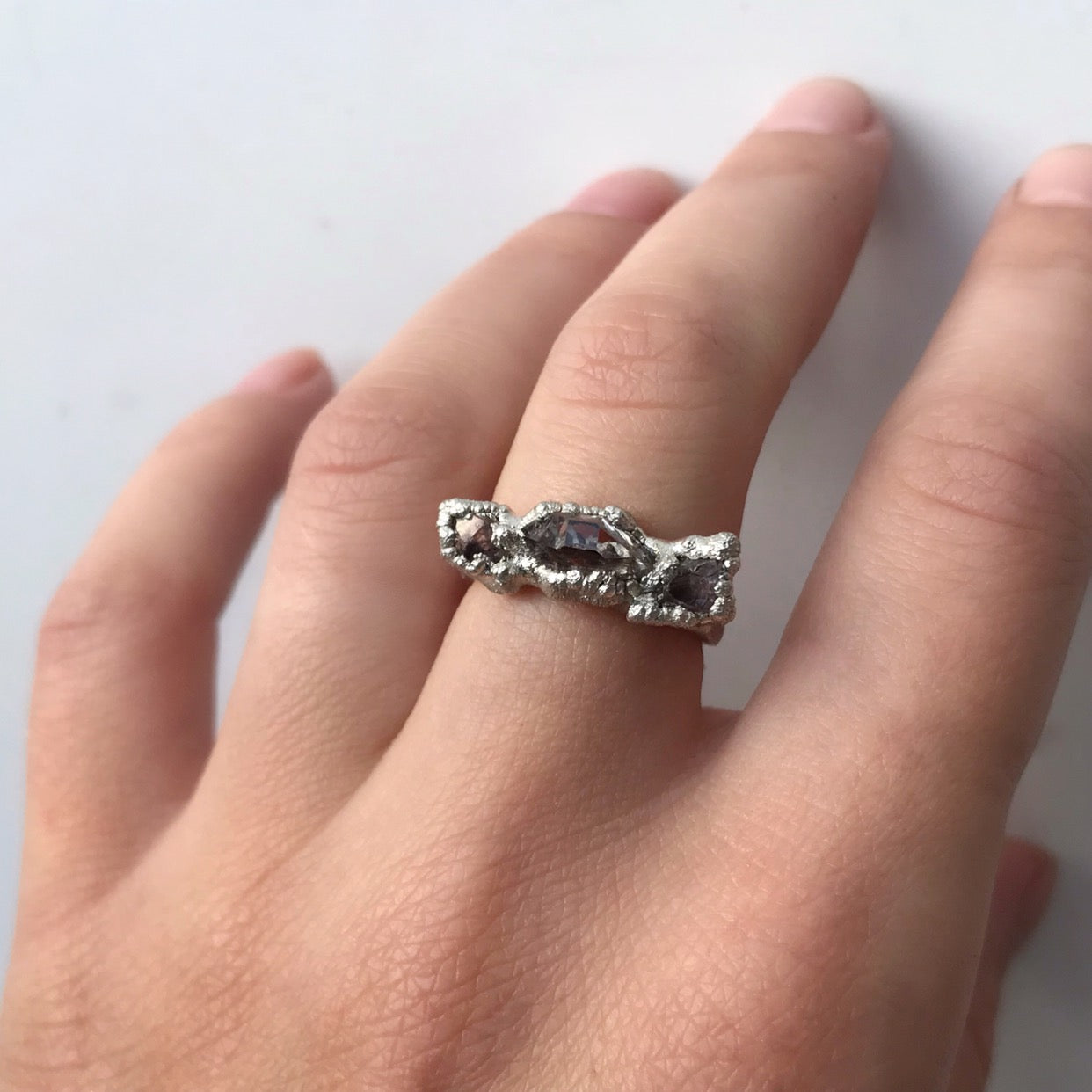 The material is amethyst and royal rock crystal, covered with a layer of copper and a big layer of silver.