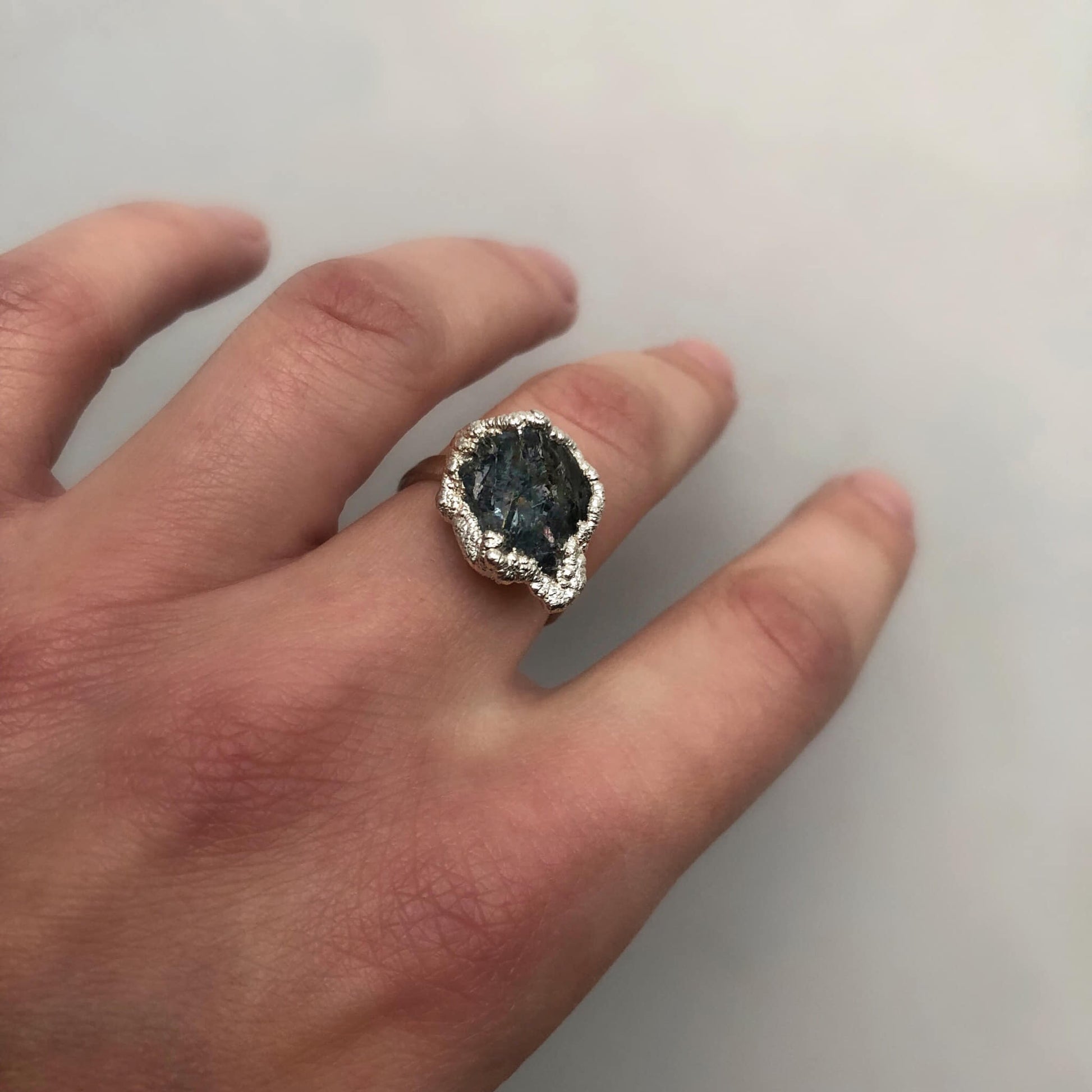 The material is topaz, covered with a layer of copper and a big layer of silver.