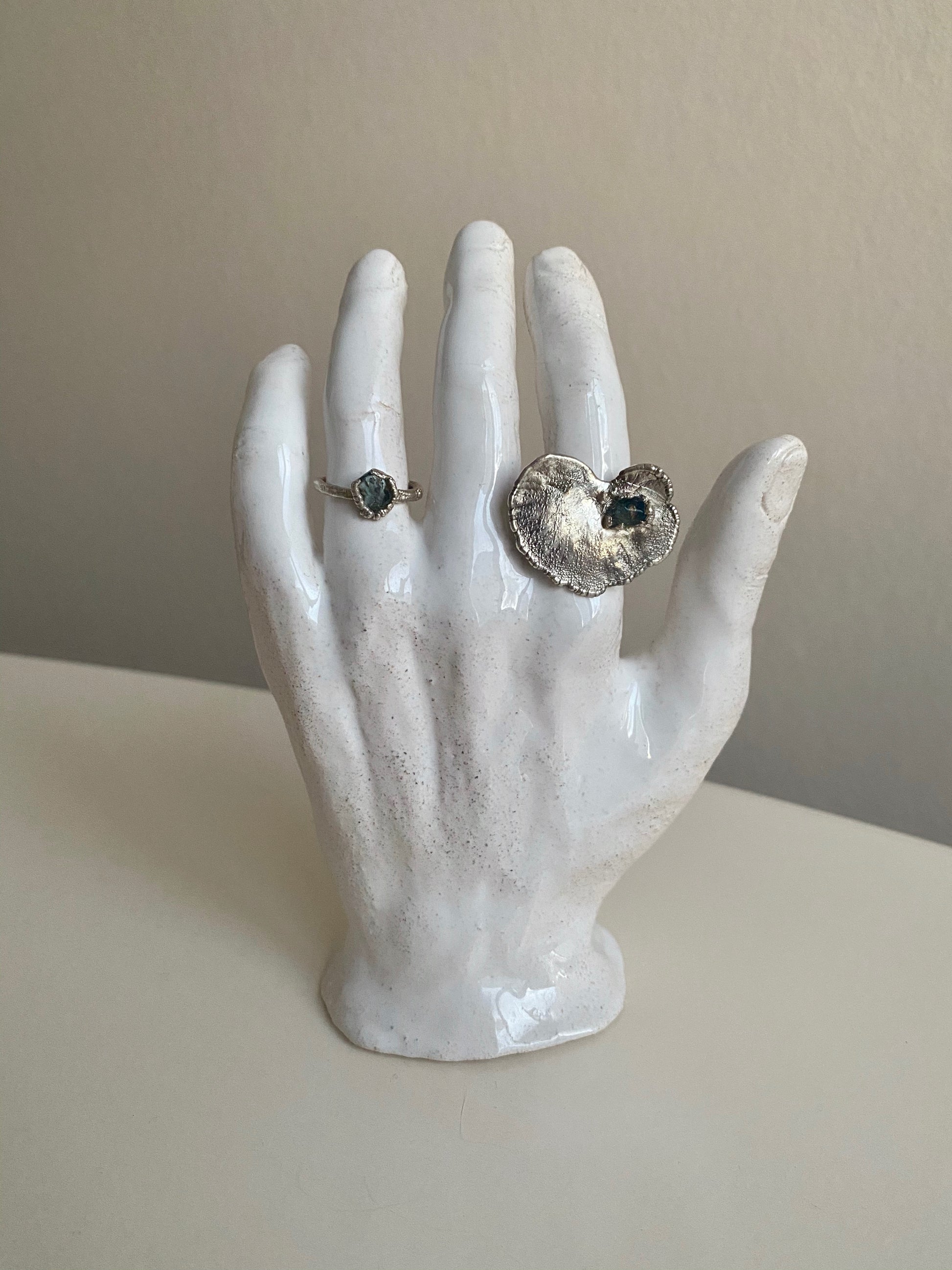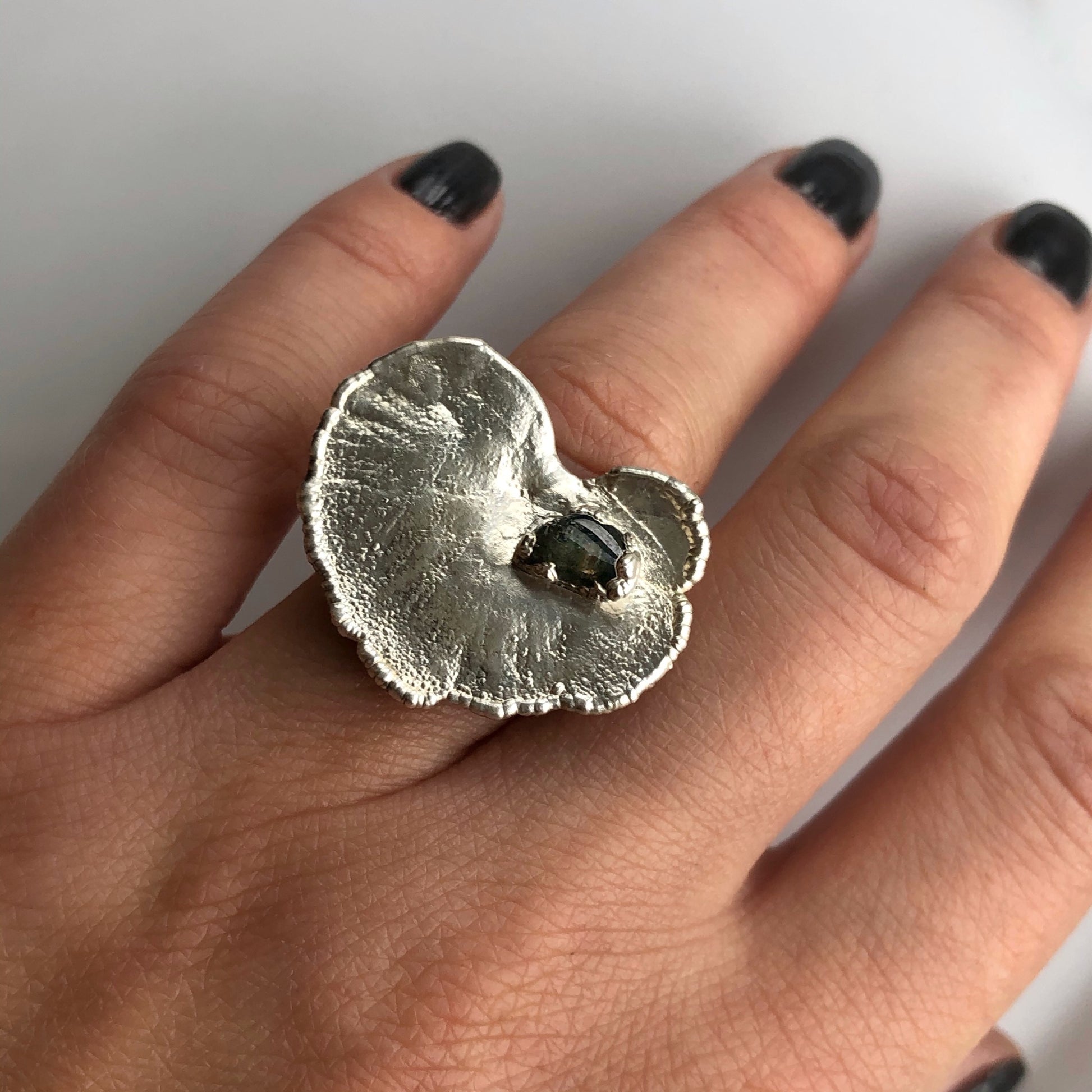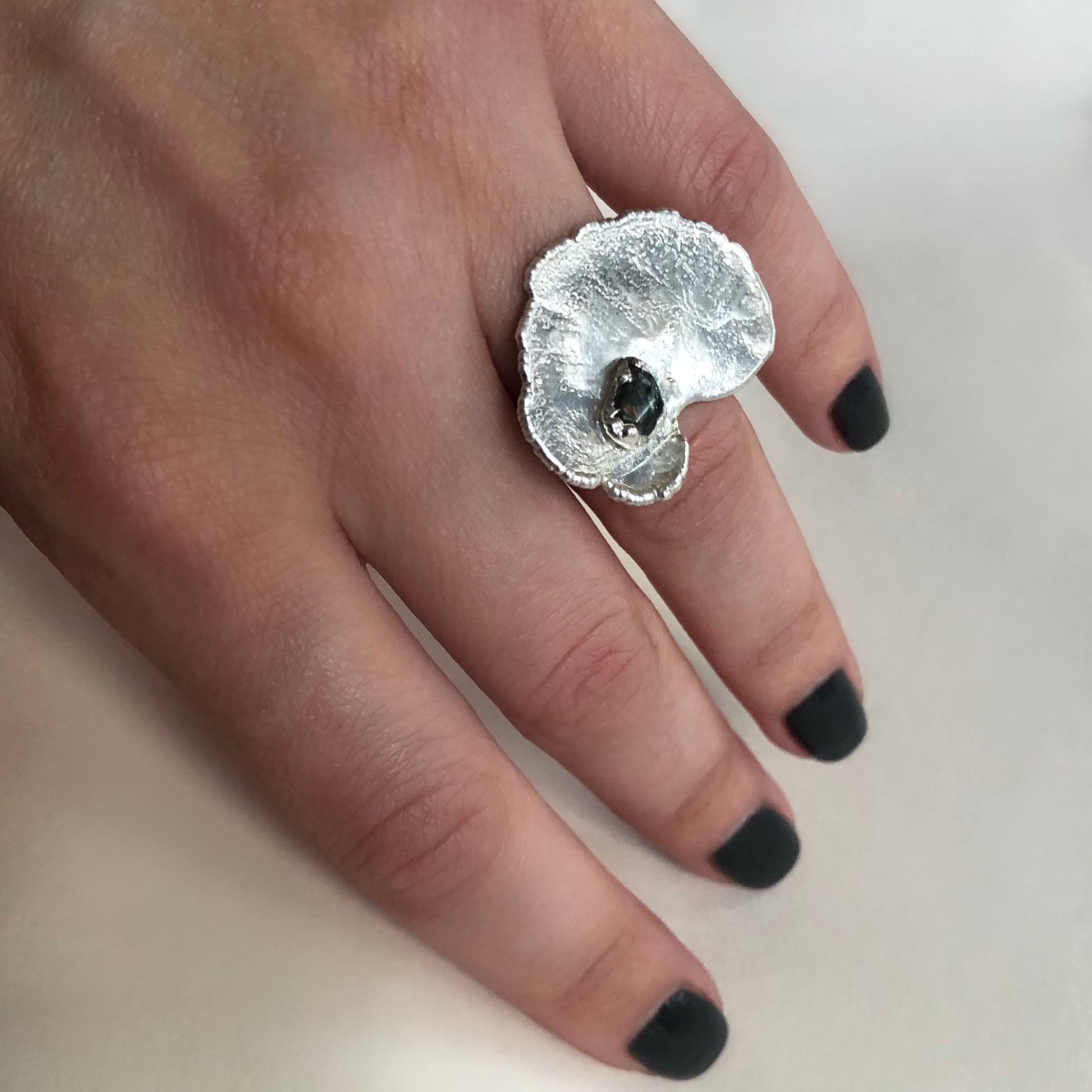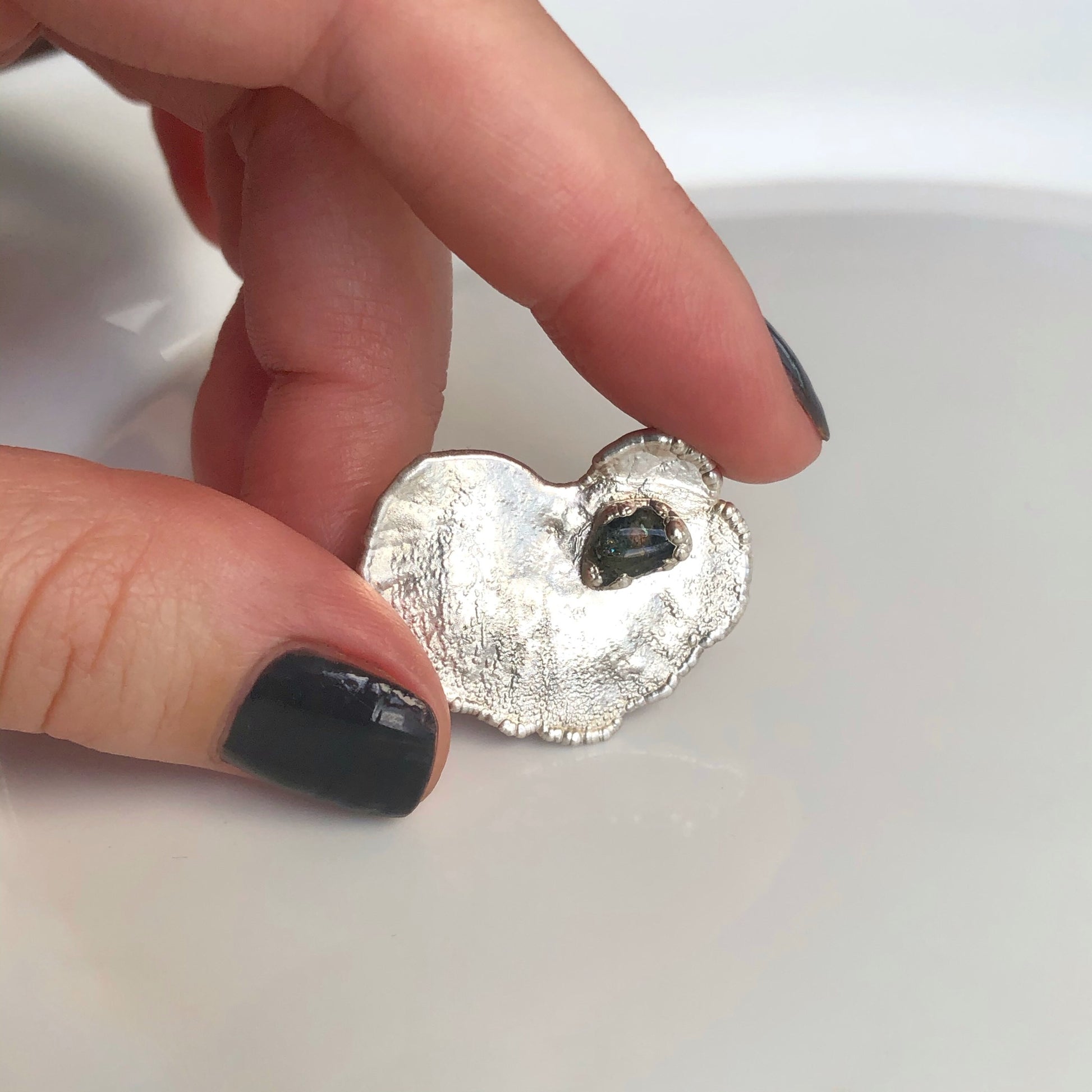 The material is natural tourmaline, covered with a layer of copper and a big layer of silver.