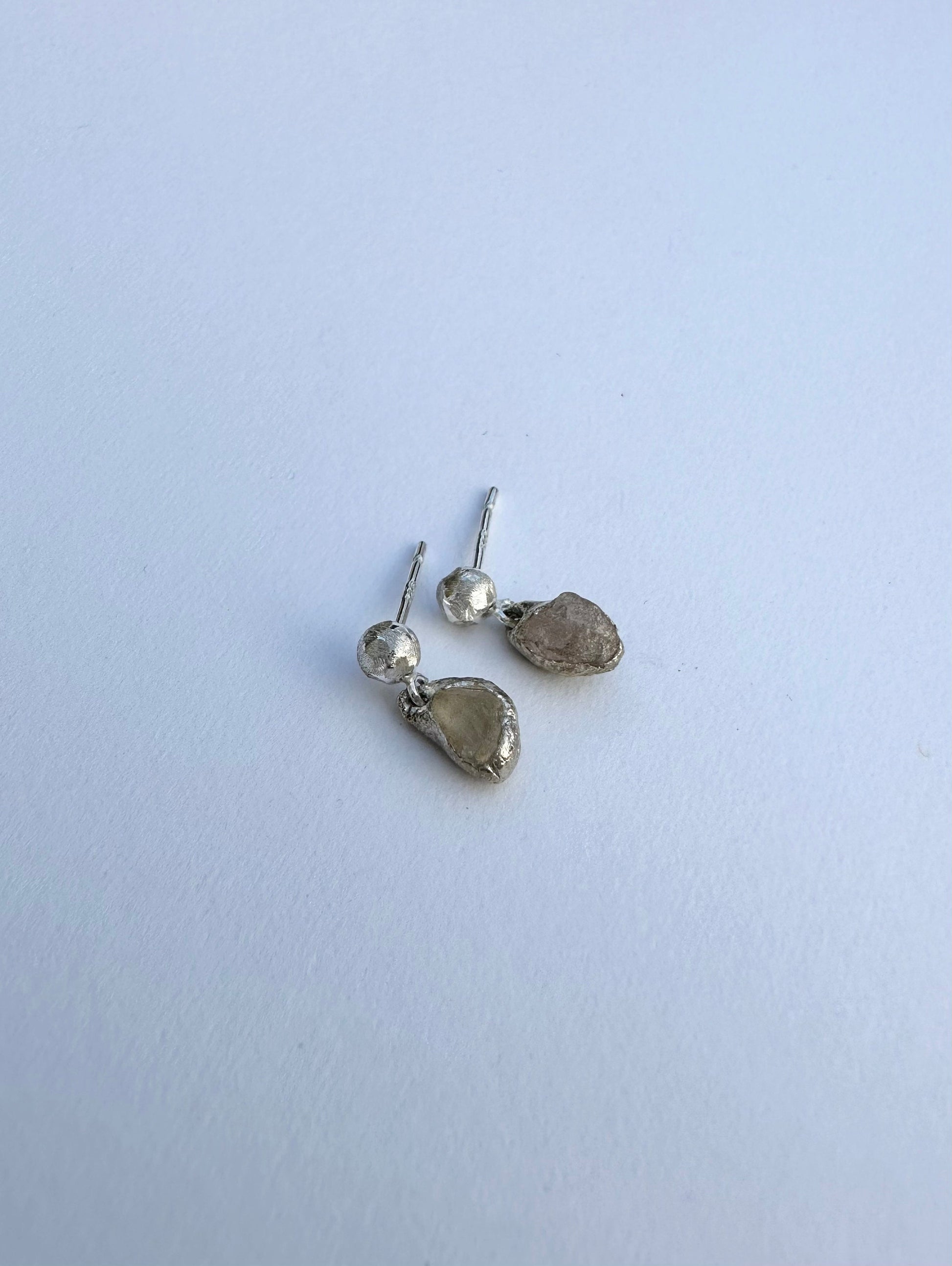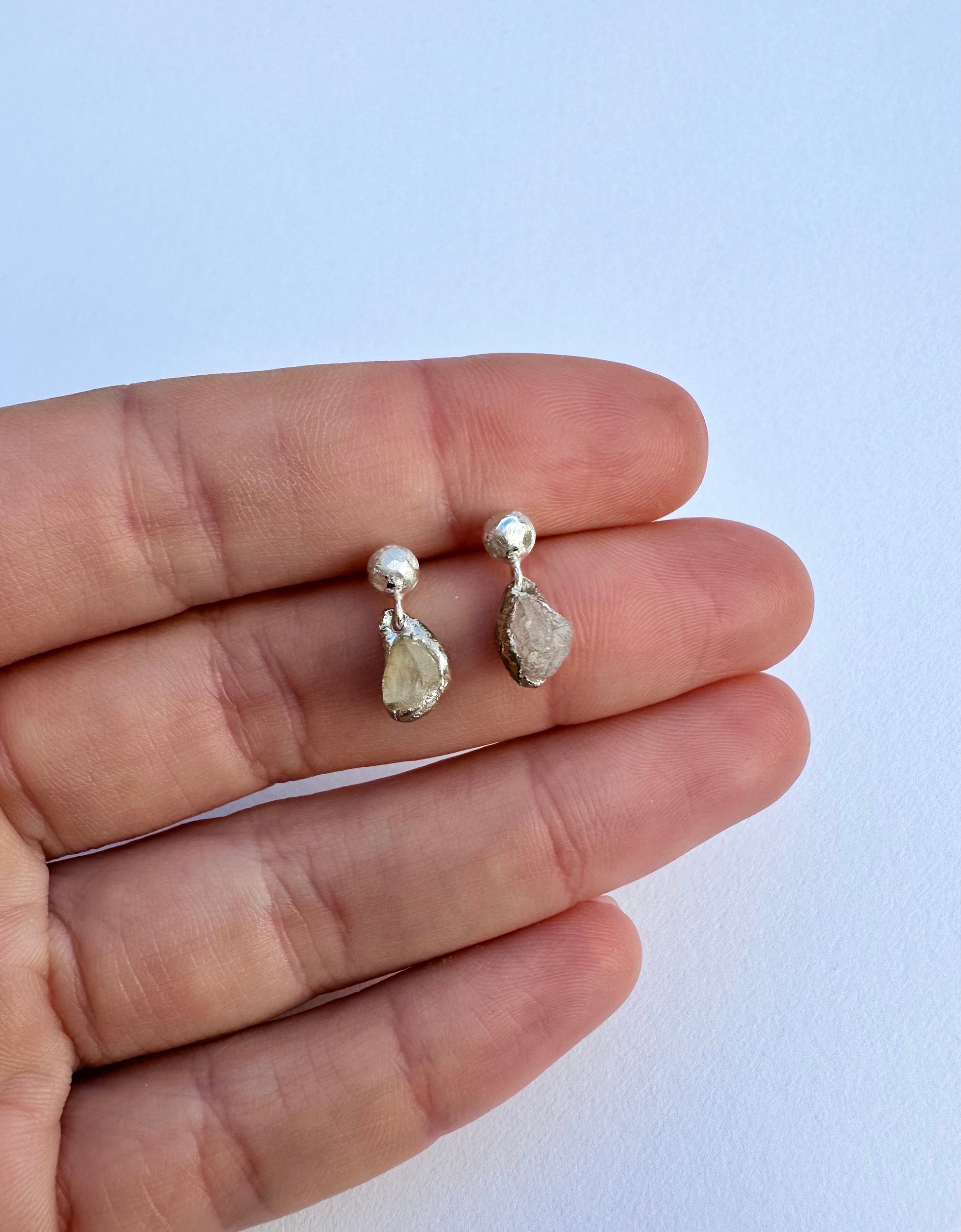 Sapphires Silver Earrings, Handcrafted Raw Sapphires Earrings, White Sapphires Jewellery