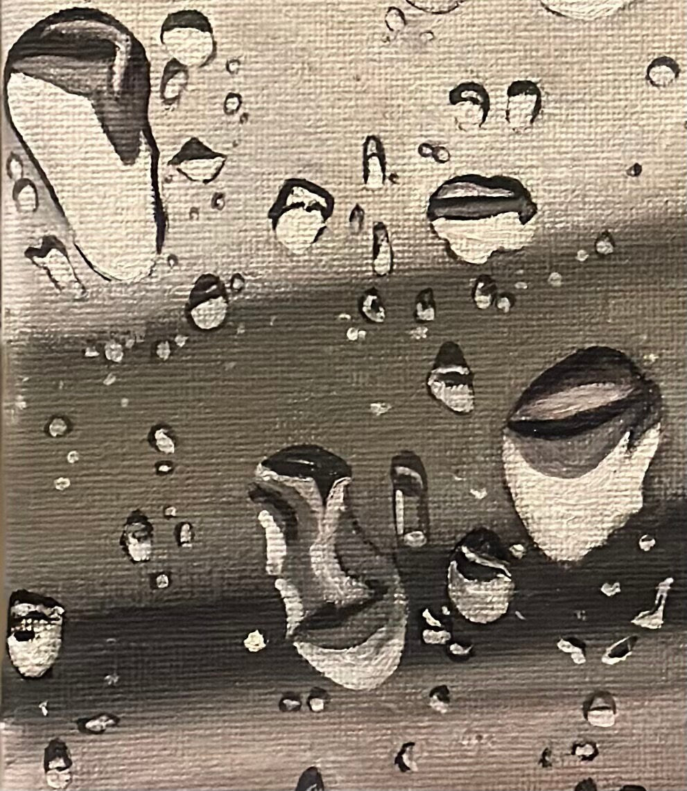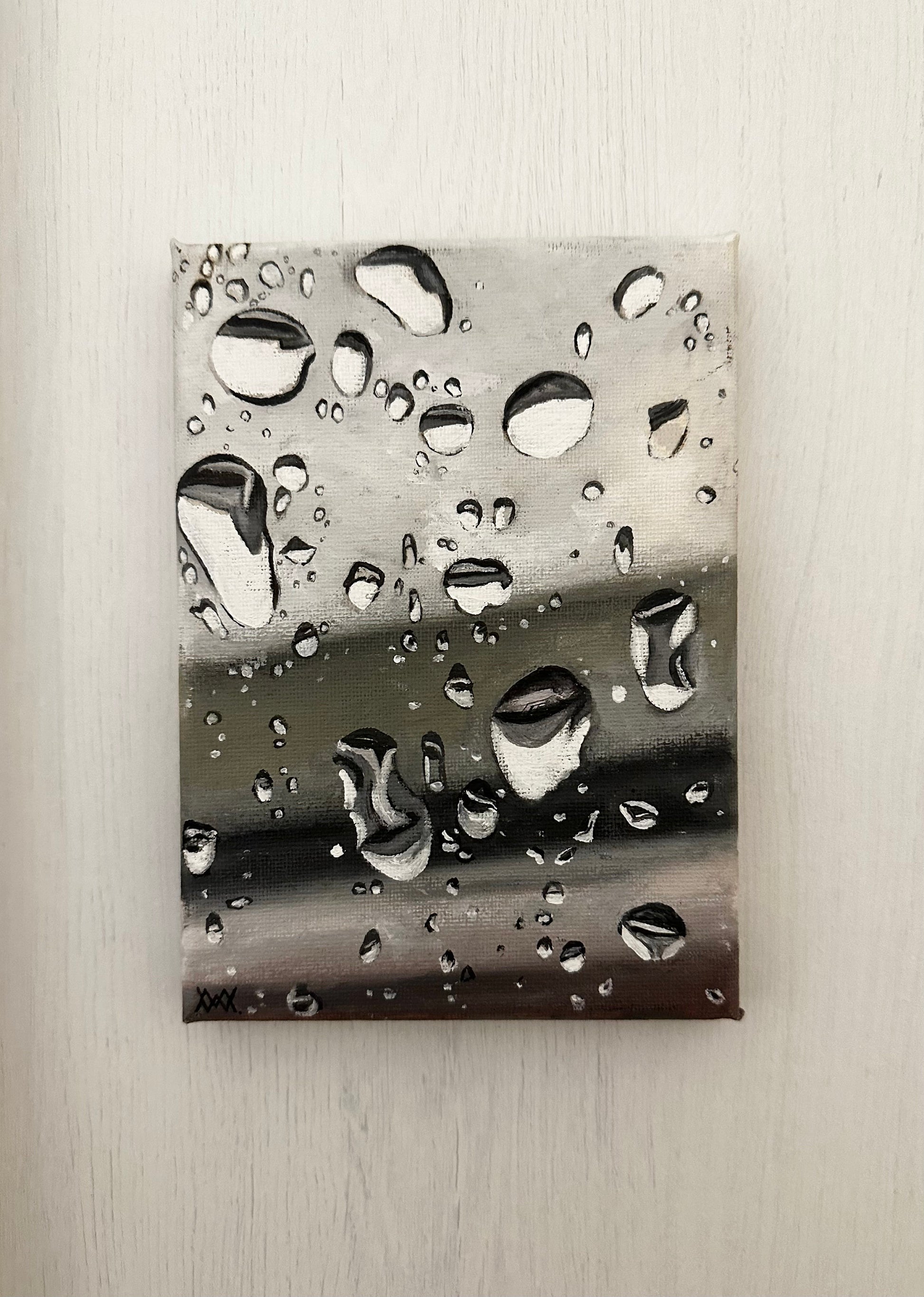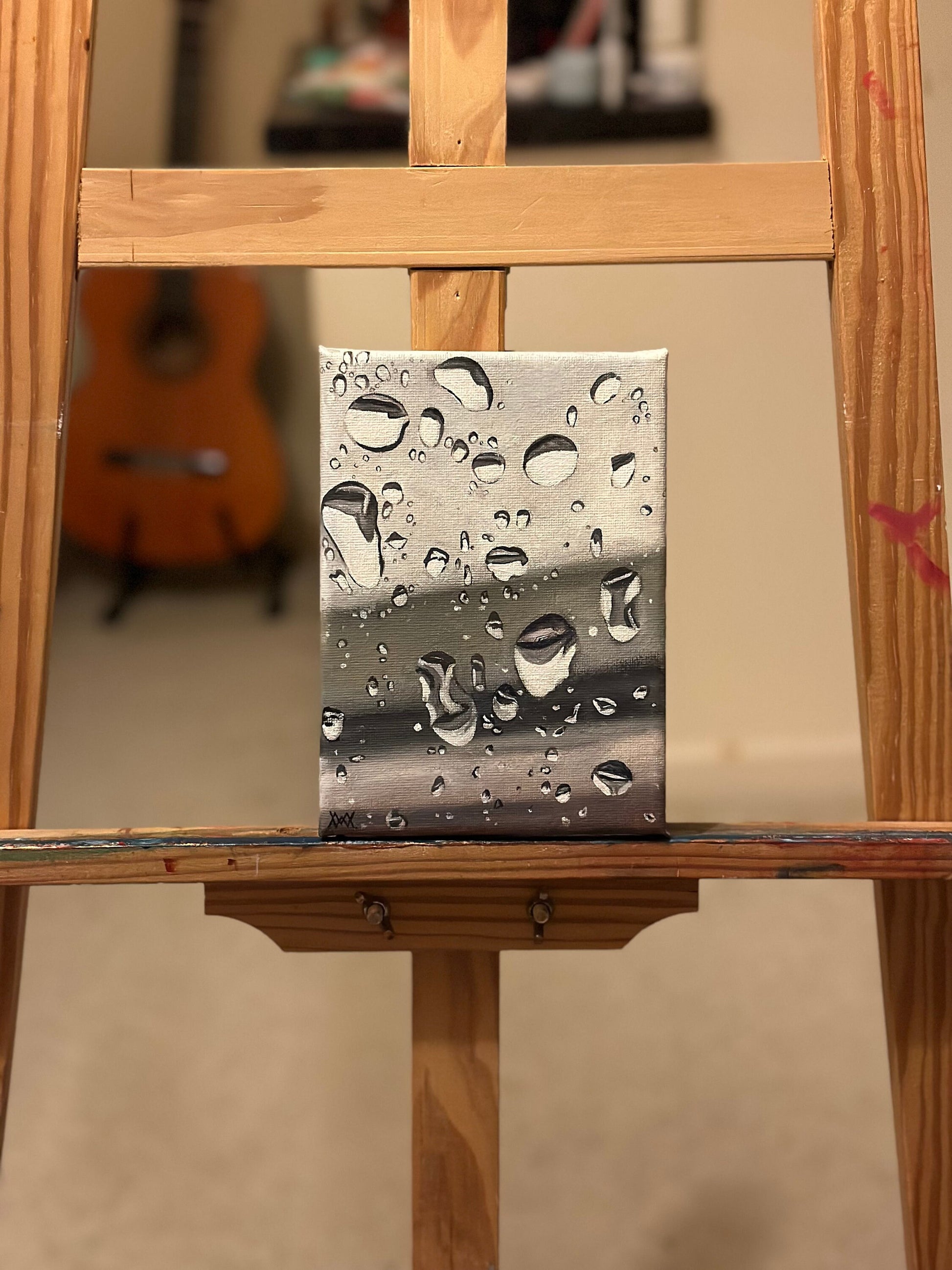 Small Oil Painting, Drops Painting, Rain Painting, Original Artwork, Black and White