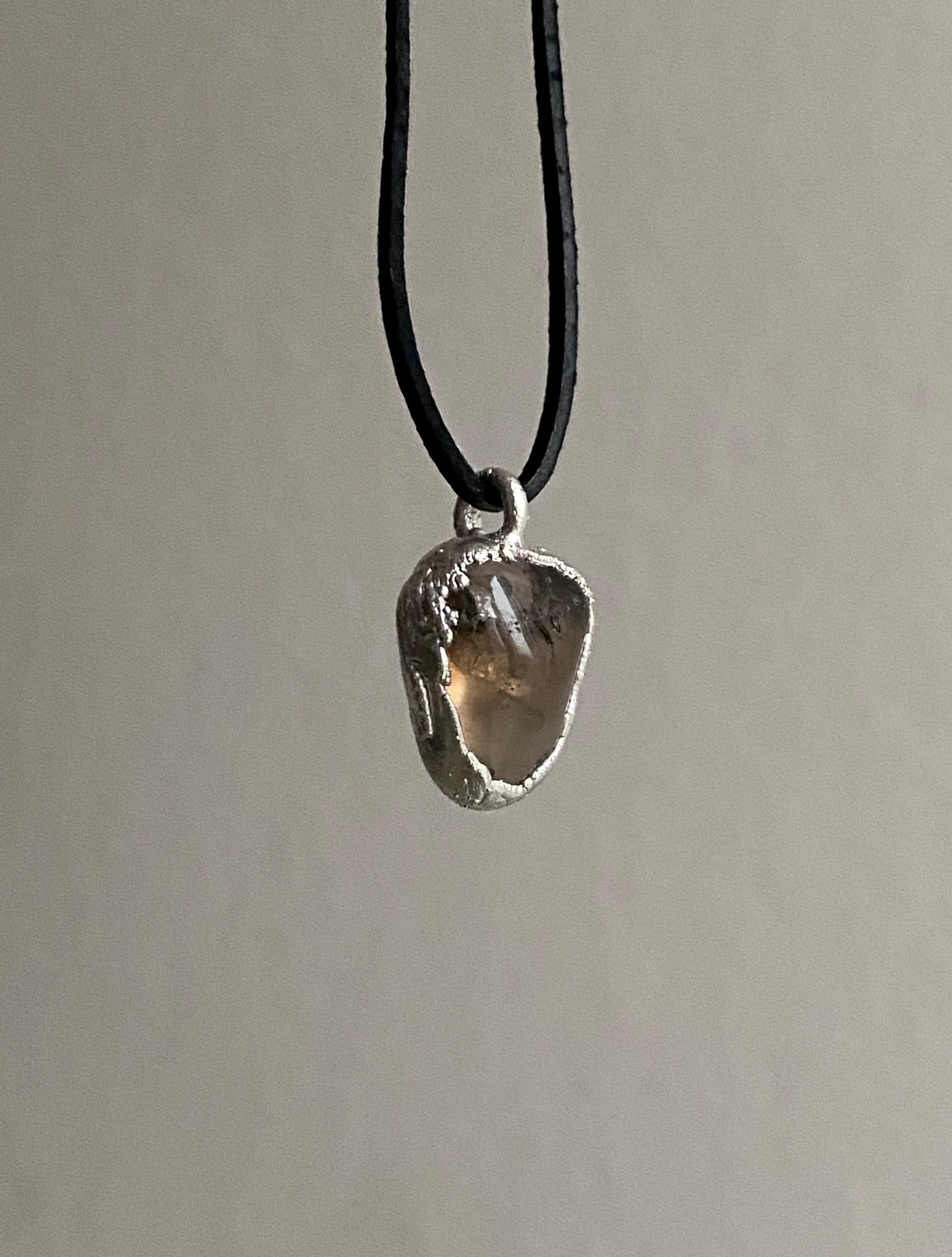 The material is natural smoky quartz, covered with a layer of copper and a big layer of silver.