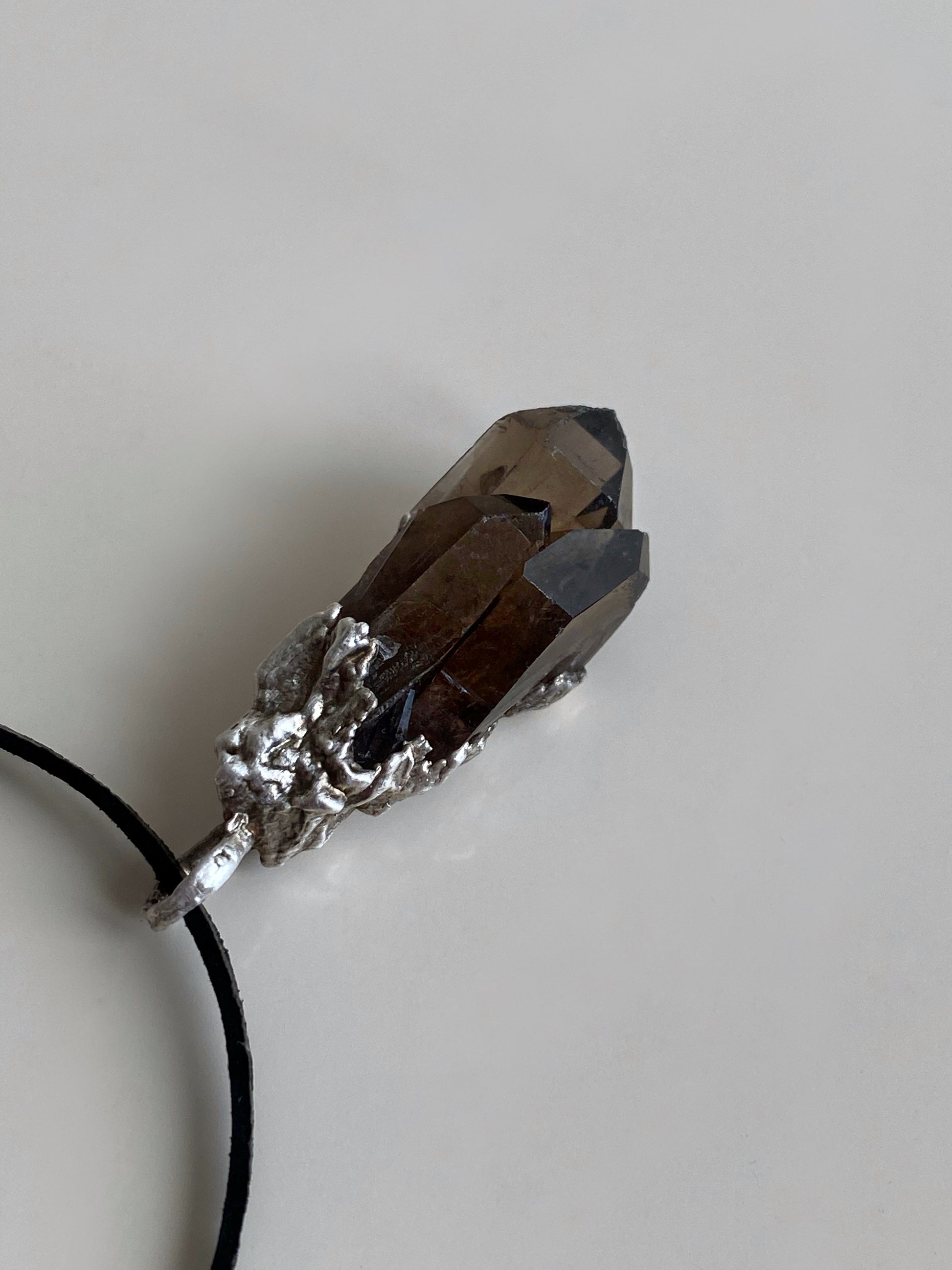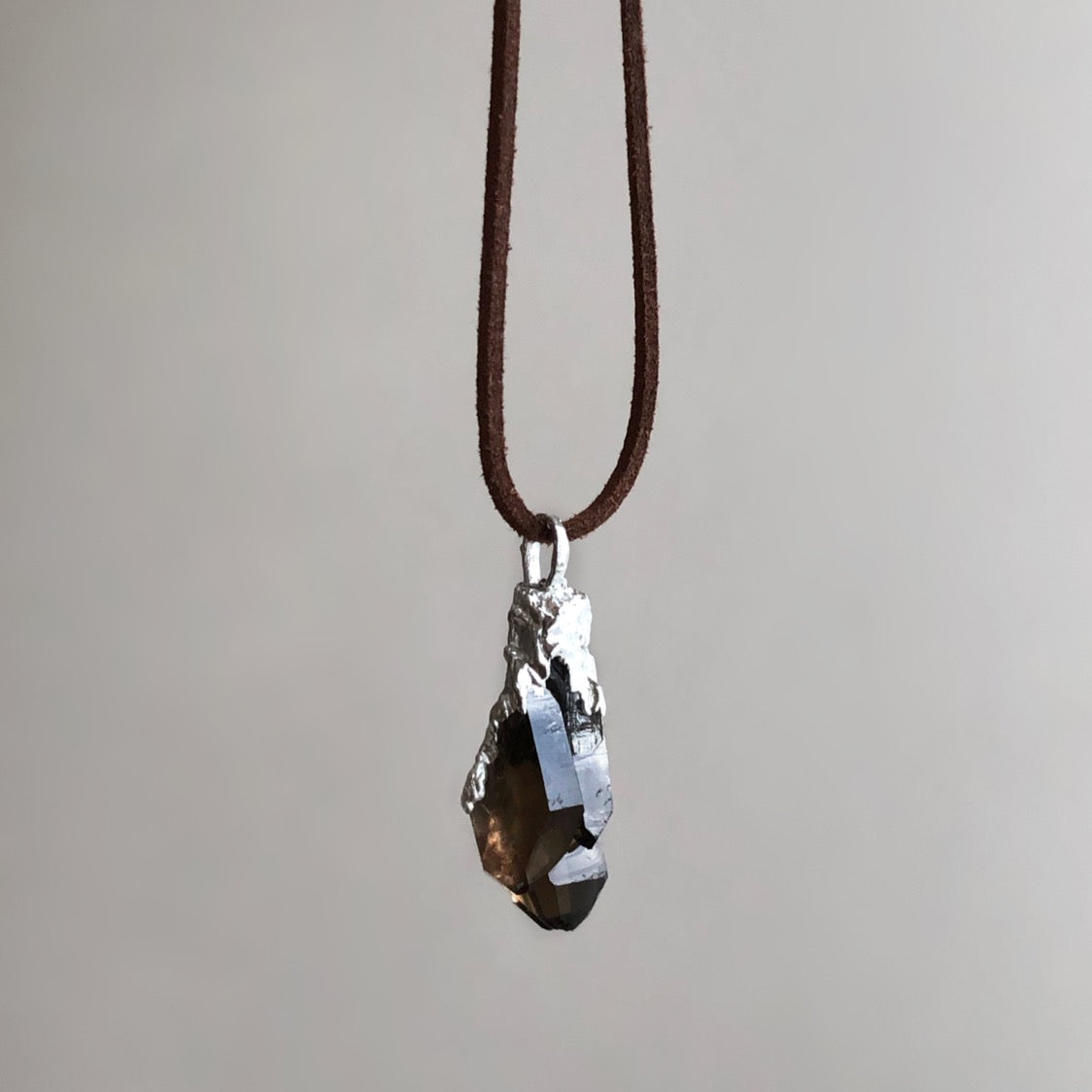 The material is smoky quartz, covered with a layer of copper and a big layer of silver.