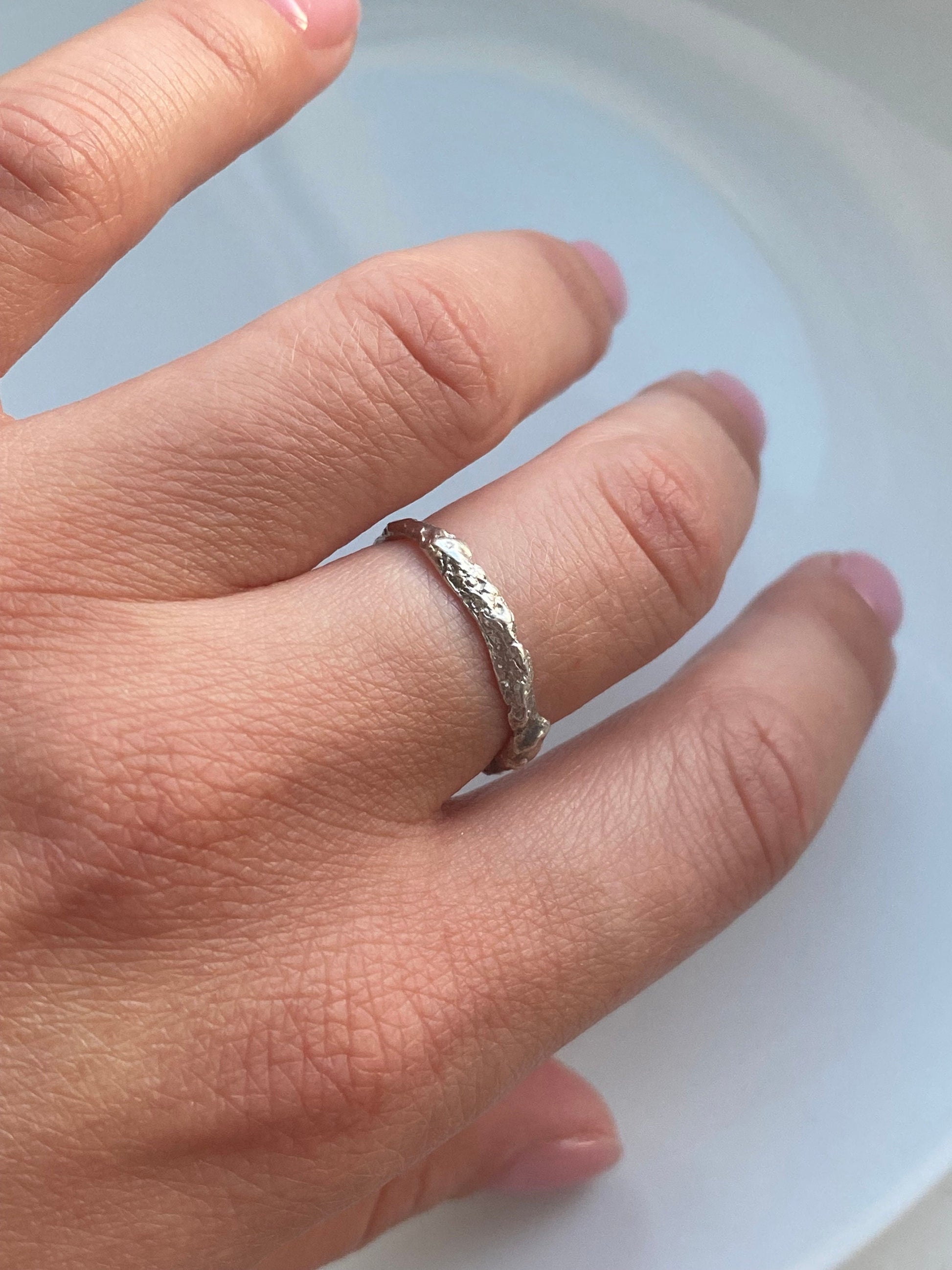Textured silver hand-made band ring, minimalist ring