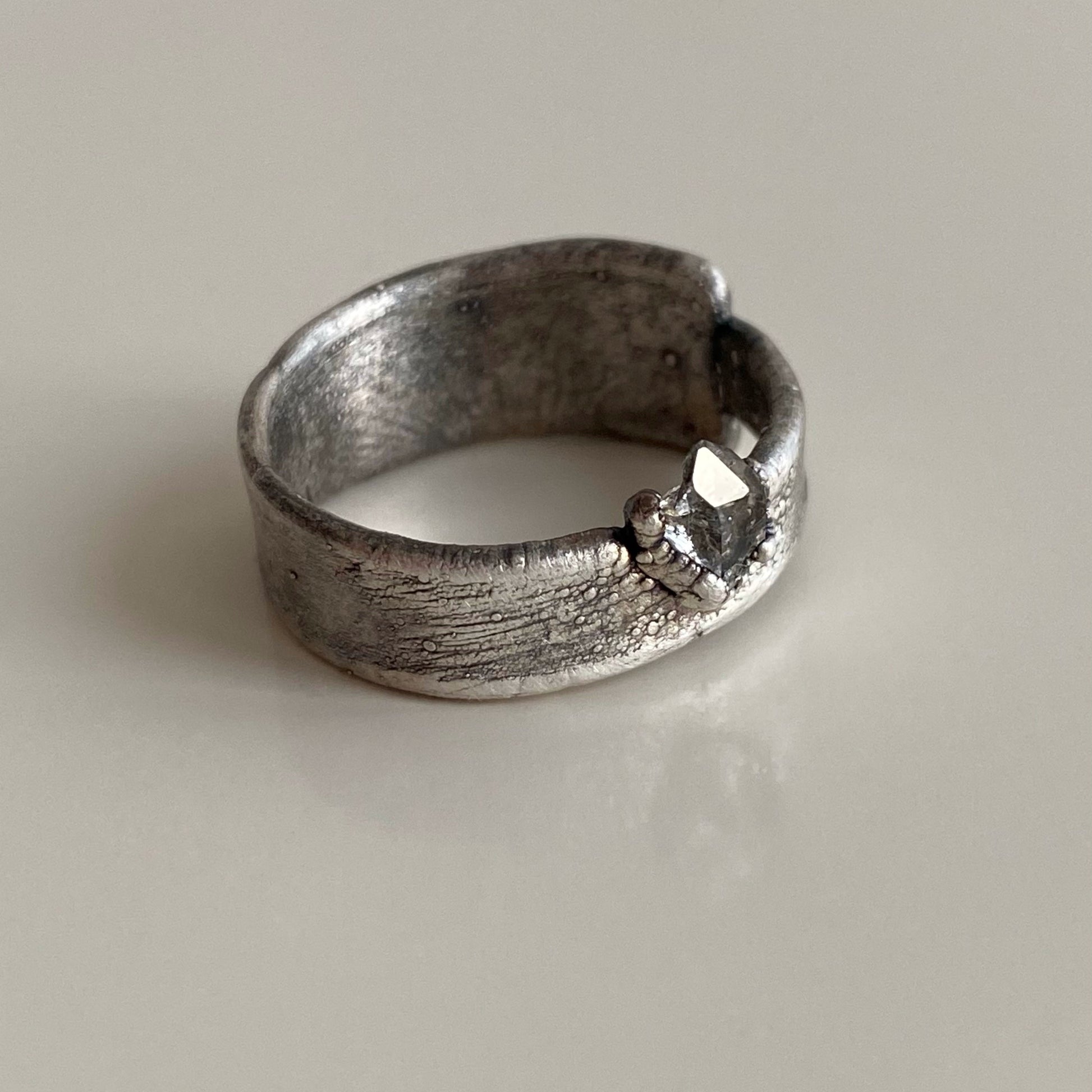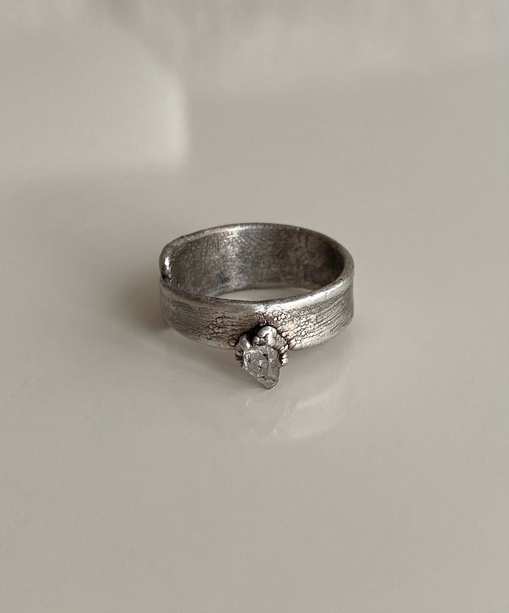 The material is natural rock crystal, covered with a layer of copper and a big layer of silver.