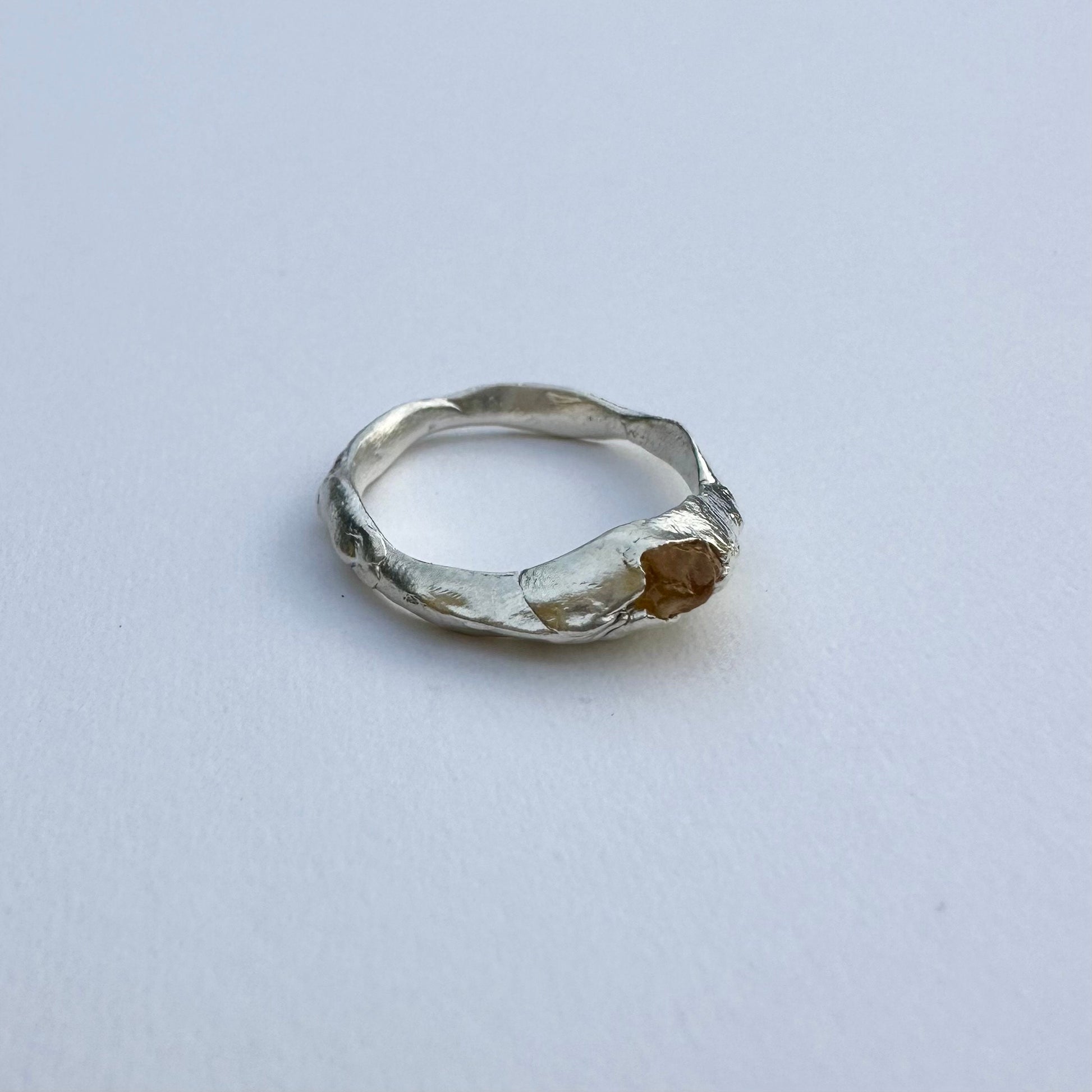 Silver hand-made ring with natural yellow sapphire