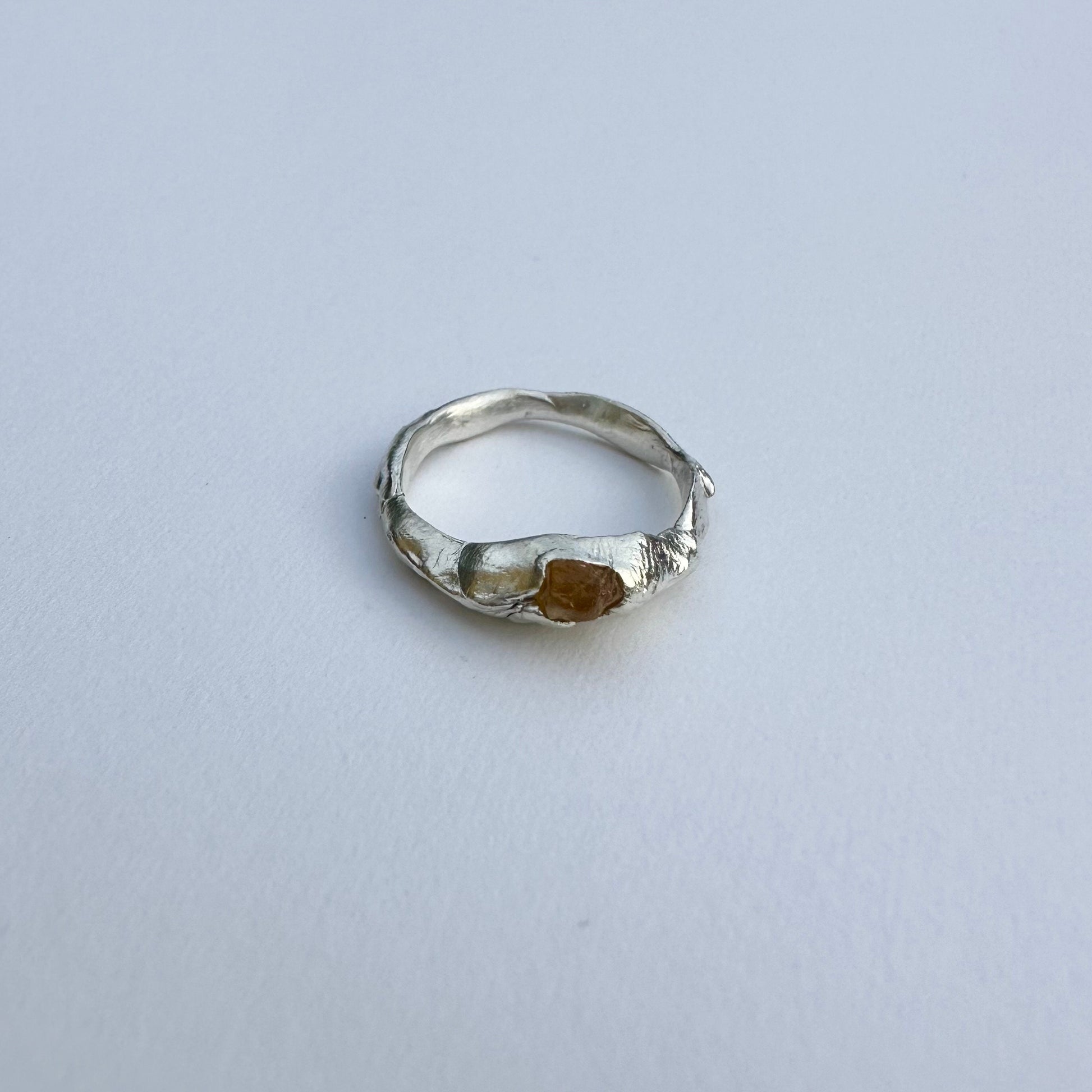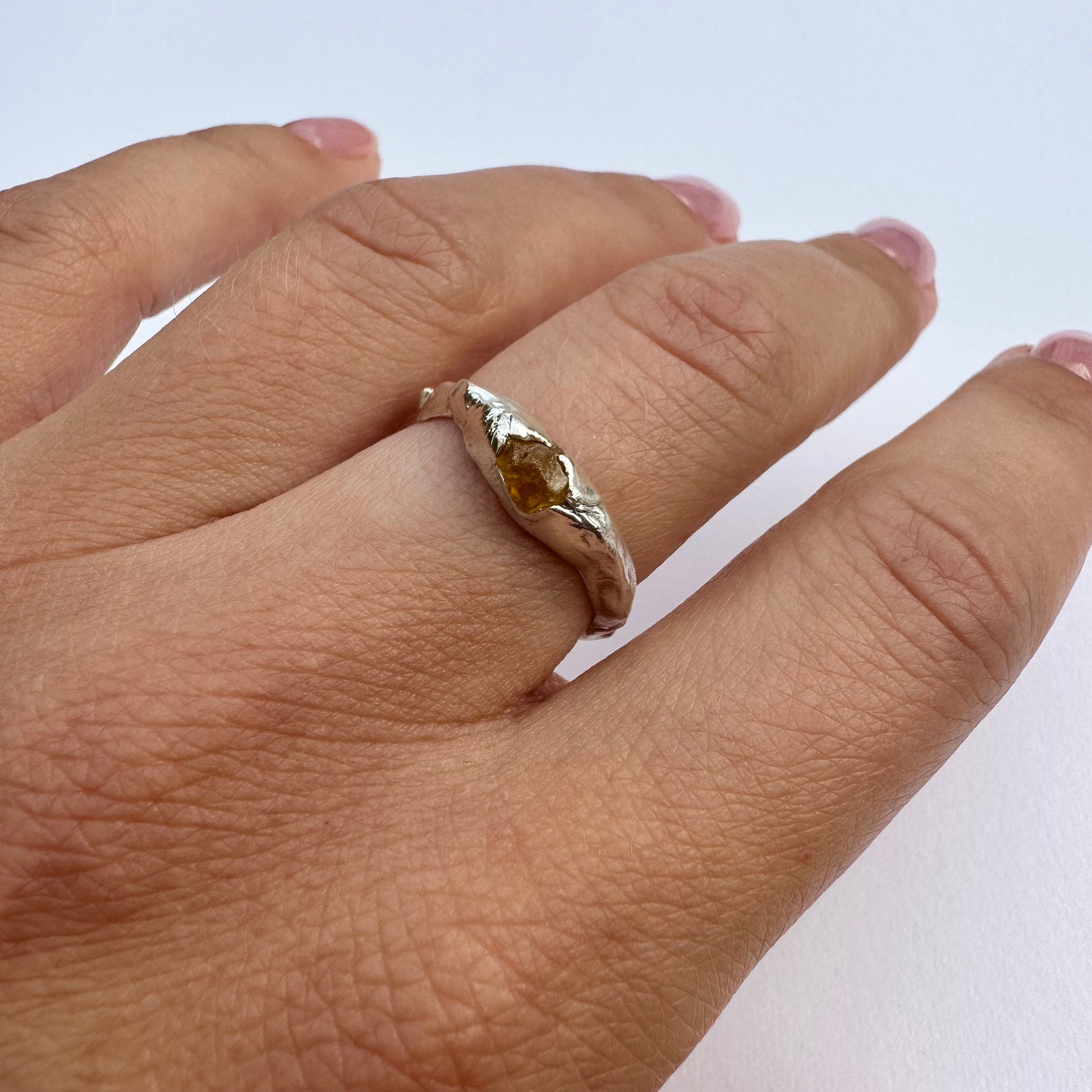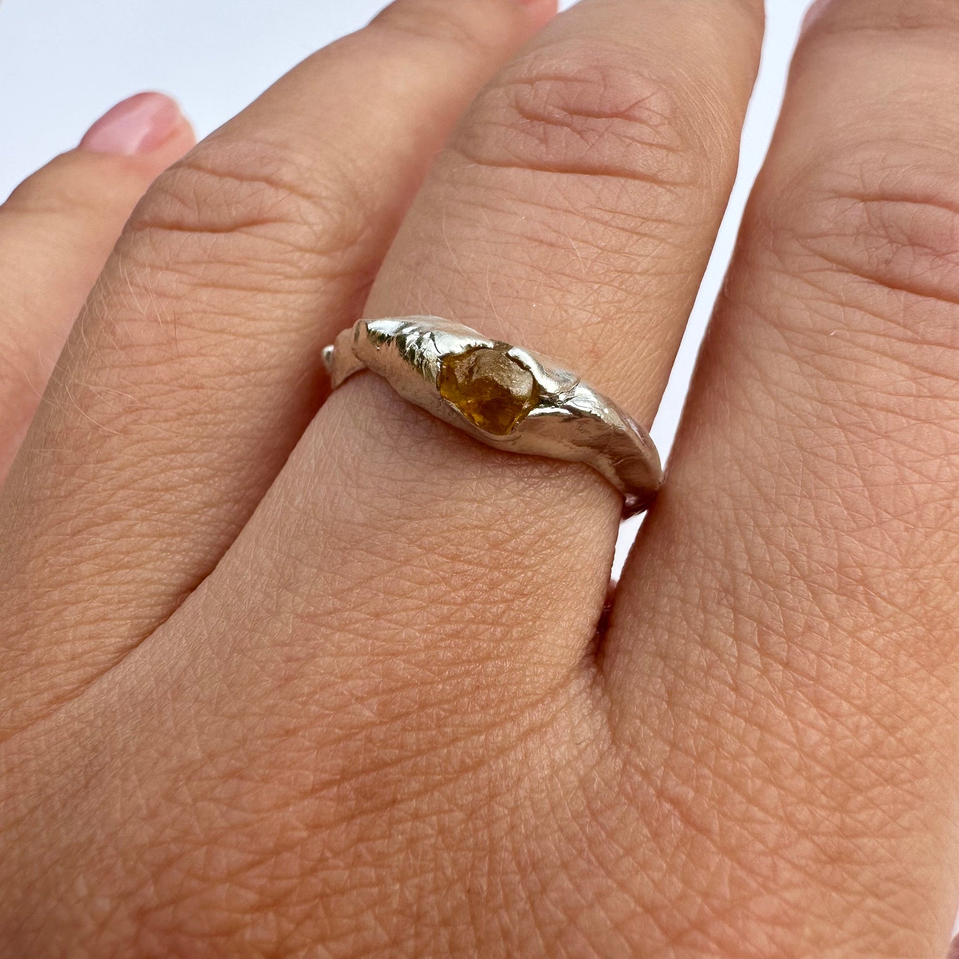Yellow sapphire ring, silver ring with natural raw sapphires stone